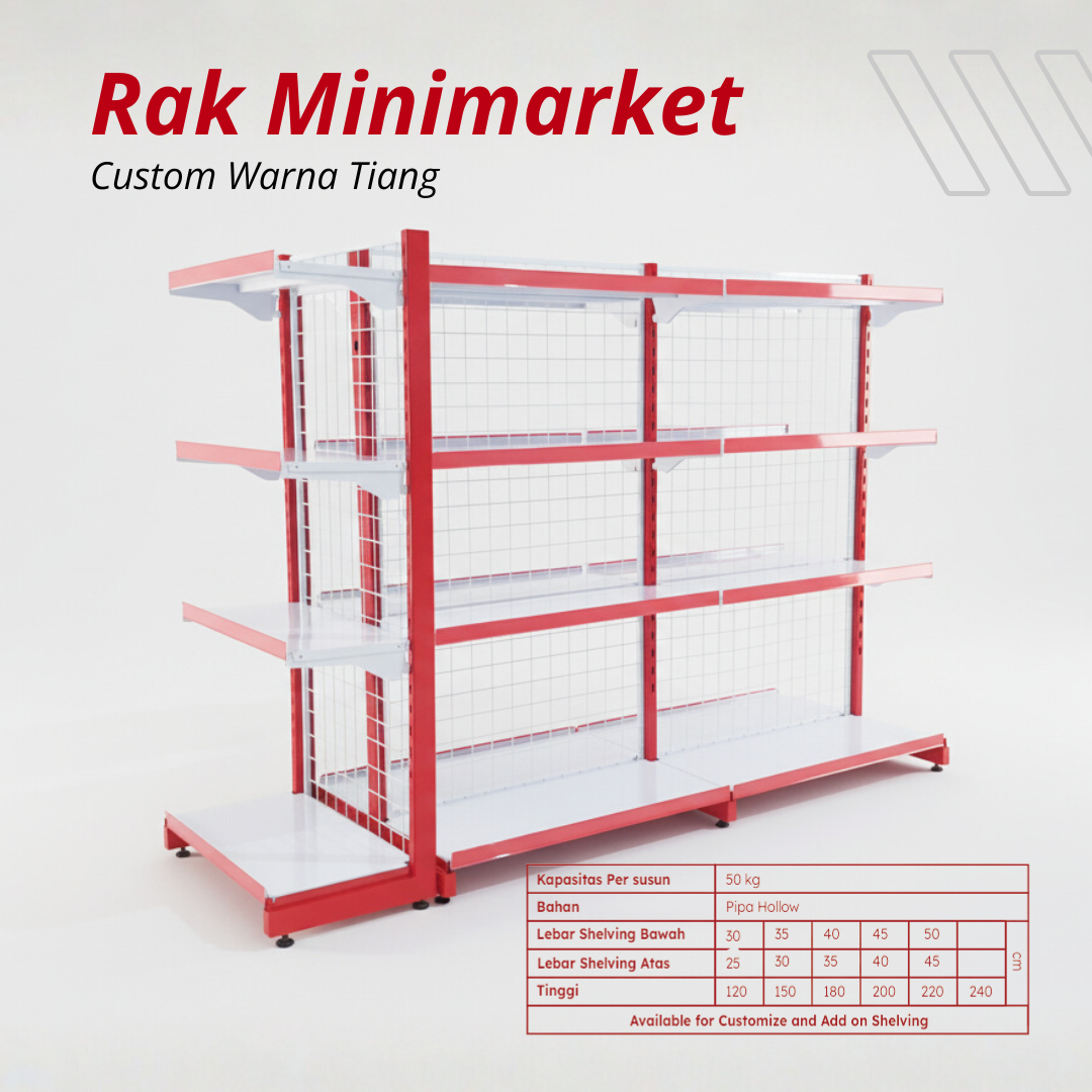 Rak bisa custom warna sesuai identitas toko atau kebutuhan Anda, menggunakan cat powder coating yang lebih awet dan tahan lama.